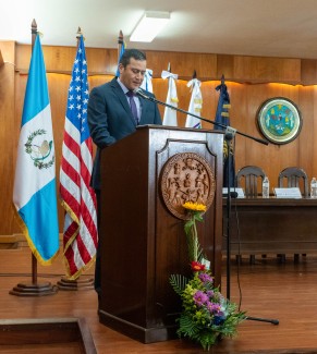 Hari itu dimulai dengan pendaftaran tamu, diikuti dengan nyanyian Lagu Kebangsaan yang menggugah oleh Orkestra Anak-anak Konservatorium Nasional Guatemala. Mynor Lemus Urbina, direktur Sekolah Ilmu Psikologi, menyampaikan sambutan hangat.