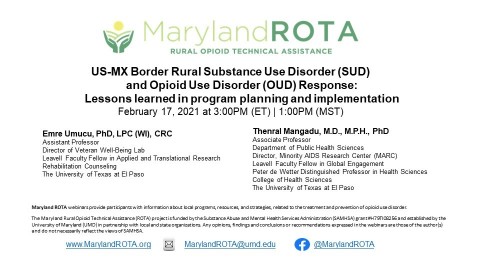 Risposta del disturbo da uso di sostanze rurali di confine US-MX (SUD) e del disturbo da uso di oppioidi (OUD): lezioni apprese nella pianificazione e nell'implementazione del programma