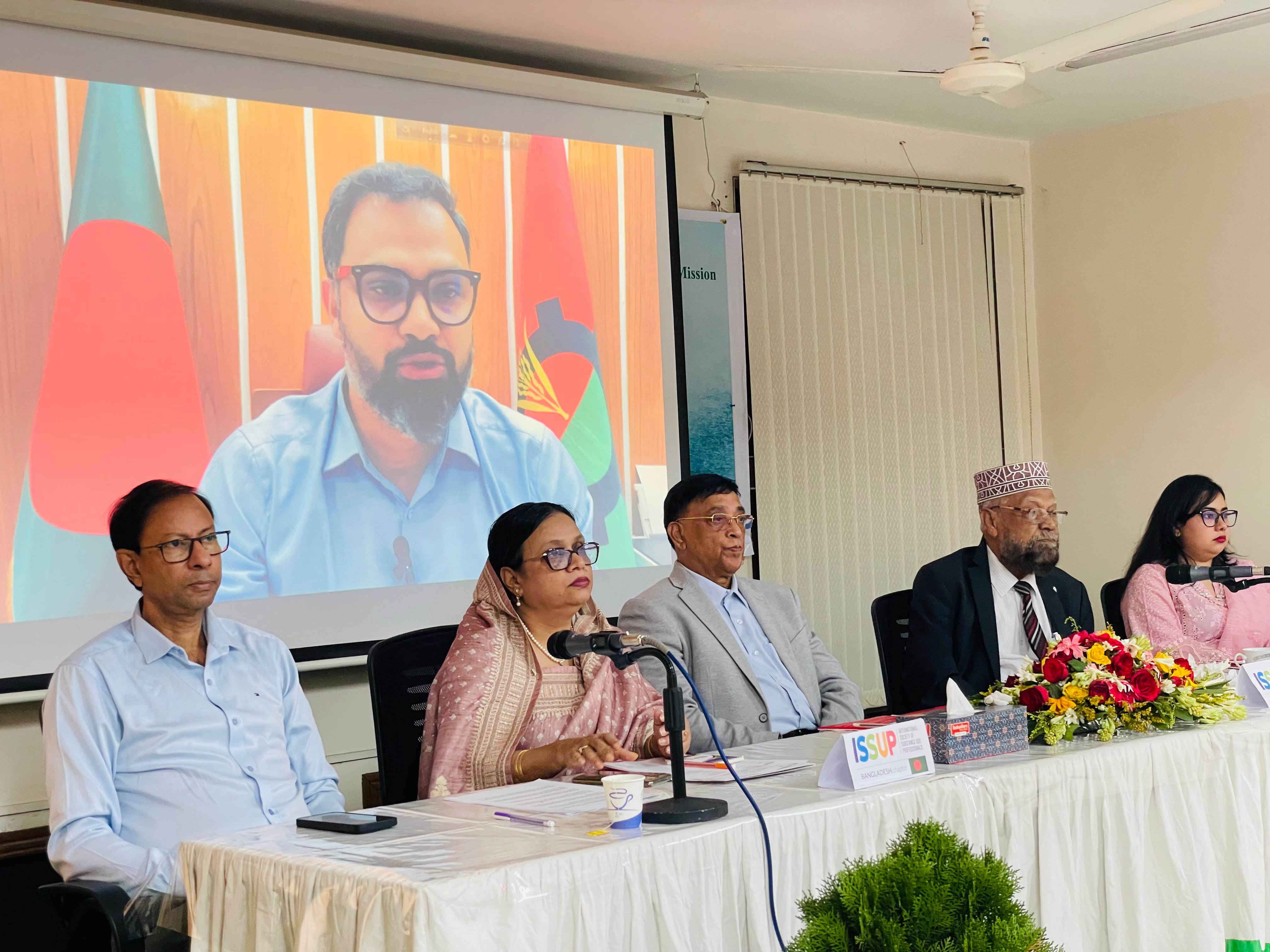 The seminar was chaired by Dr. M. A. Mohit Kamal, Chairman of ISSUP Bangladesh Chapter and Professor of Psychotherapy and Psychiatry. Special guests included Professor Dr. Golam Rahman, President of Dhaka Ahsania Mission; Mohammad Golam Azam, Additional Director General (Joint Secretary) of the Department of Narcotics Control; and Professor Dr. Mehjabin Haque from the Department of Educational and Counselling Psychology at the University of Dhaka. Iqbal Masud, Member Secretary of ISSUP Bangladesh Chapter and Director of the Health and WASH Sector at Dhaka Ahsania Mission, also spoke at the event.