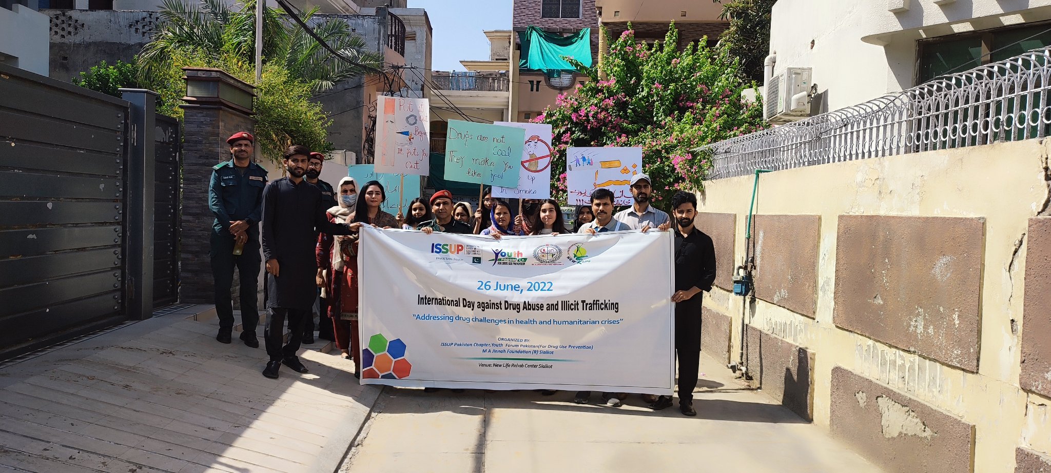 On 26th June 2022 ISSUP Pakistan, M. A Jinnah Foundation (Regd), and New Life Rehab Centre (For Drug Use Prevention, Treatment & Rehabilitation), Sialkot Organized a Seminar and Walk to Commemorate 26th June, an INTERNATIONAL DAY AGAINST DRUG ABUSE AND ILLICIT DRUG TRAFFICKING with the theme of “Addressing drug challenges in health and humanitarian crisis”.