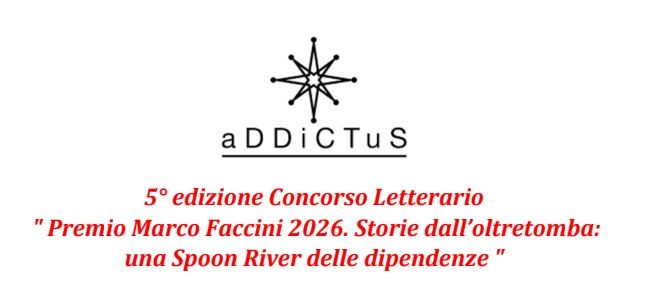 Il servizio di Medicina delle Dipendenze (AOUI Verona) e CLAD OdV, visto il grande successo delle precedenti edizioni, indice il V° Concorso Letterario Marco Faccini, dedicato a racconti e poesie che abbiano come tematica le dipendenze patologiche, sia lecite che illecite, sia da sostanze che comportamentali.