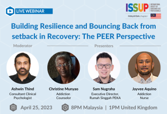 ISSUP Malaysia invite you to their Webinar on Building Resilience and Bouncing Back from setback in Recovery: The PEER Perspective.