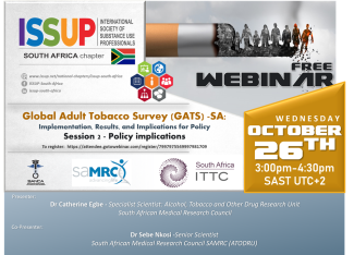 ISSUP South Africa, ITTC-SA and SAMRC - GATS-SA, would like to invite you to their upcoming Webinar Series on Tobacco Use in South Africa.