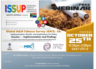 ISSUP South Africa, ITTC-SA and SAMRC - GATS-SA, would like to invite you to their upcoming Webinar Series on Tobacco Use in South Africa.