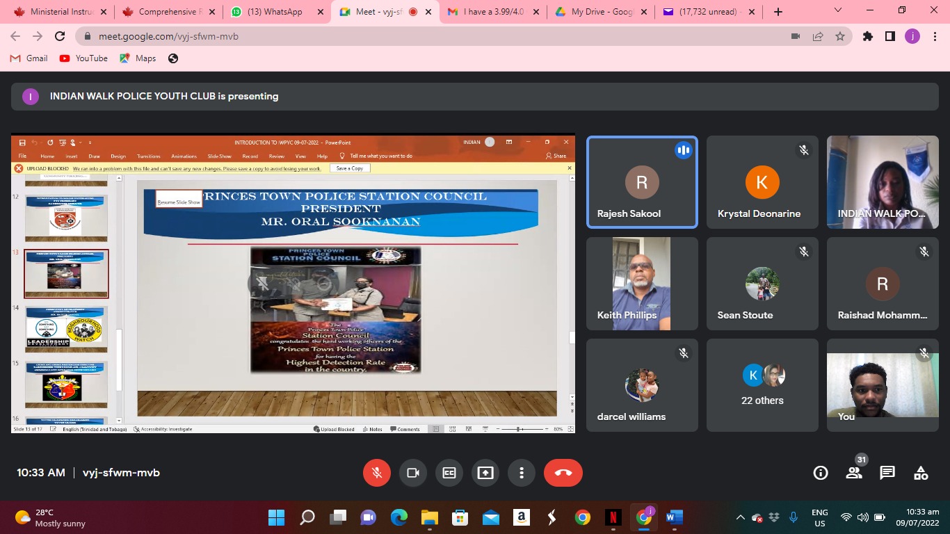 Attached are images of the introductory session that we used to get volunteers and other stakeholders involved in the RISE YOUTH project. We had attendees from the Princes Town West and Princes Town East Secondary schools, Trinidad and Tobago Police Youth Club heads and the Princes Town Regional...
