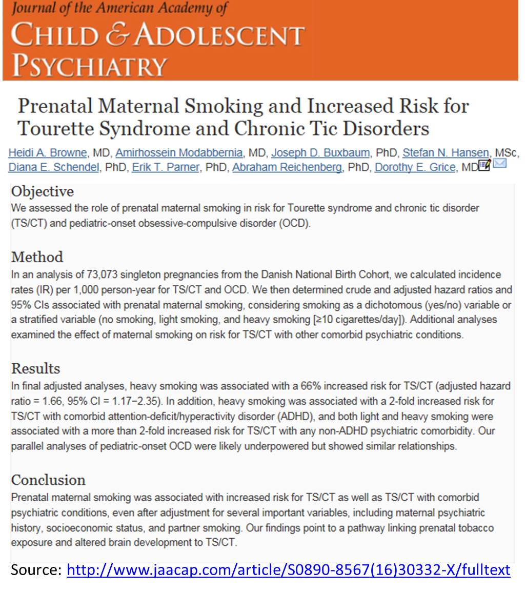 Prenatal Maternal Smoking and Increased Risk for Tourette Syndrome and Chronic Tic Disorders