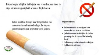 A lot of young people in Suriname use sigarettes as a transition drug. They usually begin smoking sigarettes to show how cool they are and step over to using marihuana and other drugs if there's no guidance. This is the reason why it is important for young people to know the dangers and for them to receive the right counseling. There is also a picture with the information about the damage caused by alcohol in the brain. It's written in our native lanuage (dutch).