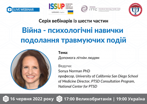 ISSUP اوکراین او ITTC-اوکراین تاسو ته د روانې جګړې او په اوکراین باندې د روسیې د برید په پایله کې د وحشتناکه پیښو لپاره وقف شوی ګډ نوښت هرکلی کوی. اوکراینیان اوس مهال د خورا ټکان ورکوونکی پیښو تجربه کوی چې د اوږدې مودې لپاره به د دوی روانی روغتیا باندې مستقیم اغیزه ولری. د دې انلاین پیښو هدف په اوکراین کې د مسلکی کسانو ملاتړ کول دی ، ترڅو په حاد او اوږدمهاله فشار کې د مختلف ګروپونو خلکو ته د لومړنیو مرستو د شواهدو پراساس موجود مهارتونه چمتو کړی ، ترڅو هغه شرایط وپیژنی چې متخصصینو ته حواله ته اړتیا لری.